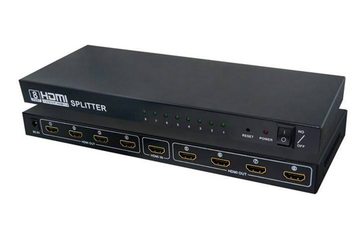 HDMI Splitter με μια είσοδο και 8 εξόδους,πολυ εύκολο στην χρήση και χωρίς ανάγκη εγκατάστασης.Διαθέτει 8 όμοιες εξόδους HDMI ενώ είναι συμβατό και με ποιότητες 1080P.Είναι η καλύτερη επιλογή για κέντρα διαδικτυακής αναψυχής,σχολεία,κέντρα επιχειρηματικής κατάρτισης,κέντρα παρουσιάσεων και άλλα.Λειτουργείστε το πολύ εύκολα απλώς τοποθετώντας το καλώδιο HDMI στν θύρα εισόδου,έπειτα συνδέστε τις συσκευές που θέλετε στις θύρες εξόδου ,συνδέστε ακόμη τον αντάπτορα φόρτισης στο Splitter Box και τέλος τοποθετήστε τον φορτιστή στην πρίζα.Το Splitter Box είναι έτοιμο για χρήση.